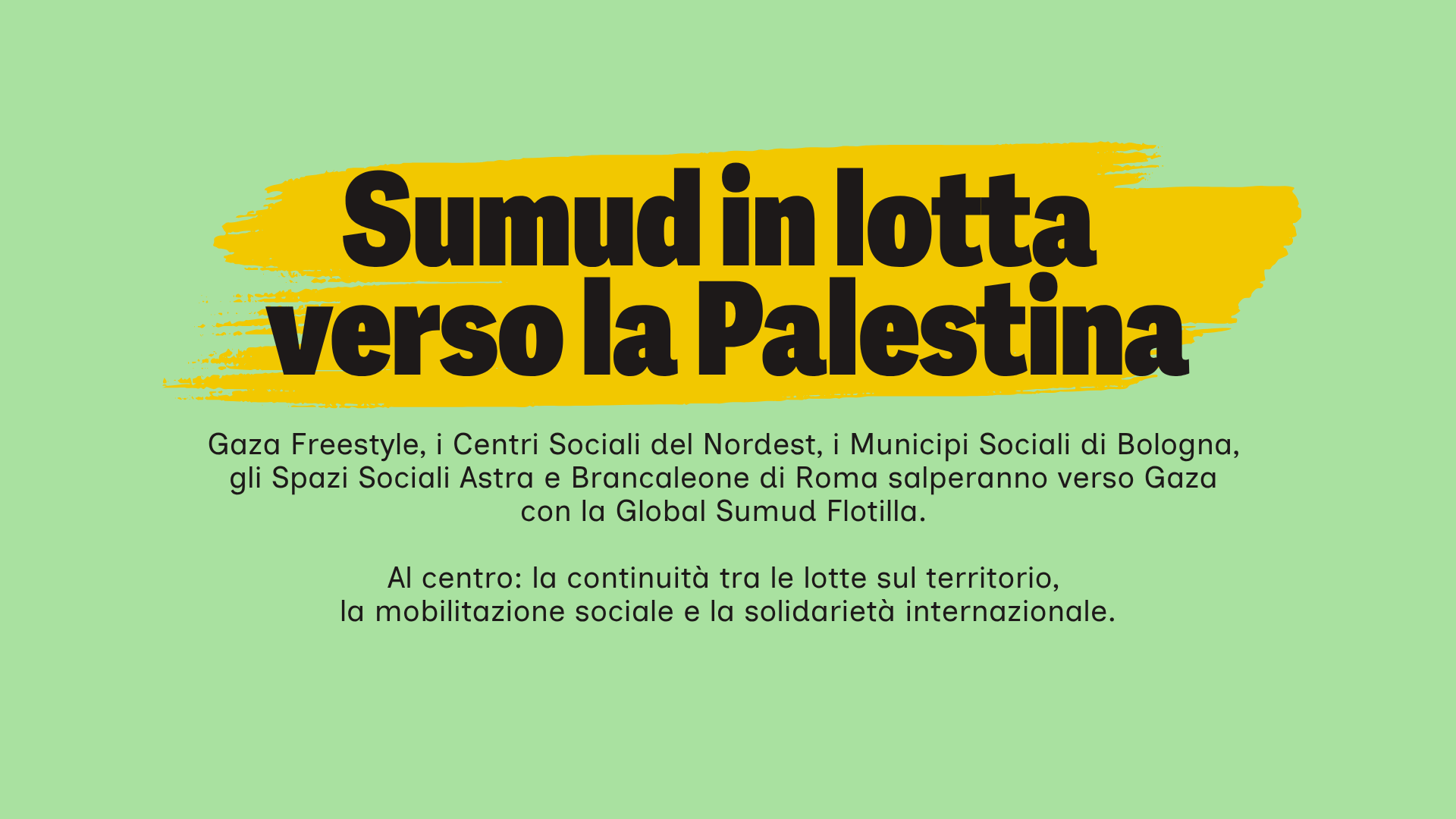 Gaza Freestyle, Centri Sociali del Nord-Est, Municipi Sociali di Bologna, Spazi Sociali Astra e Brancaleone di Roma salperanno verso Gaza con la Global Sumud Flotilla. Al centro della missione c’è la continuità tra le lotte sul territorio, la mobilitazione sociale e solidarietà internazionale. Al centro della missione c’è la continuità tra le lotte sul territorio, la […]