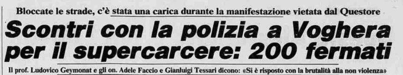 9 luglio 1983. In questo viaggio complesso e articolato emerge, e non è la prima volta, come per la ripresa del movimento autonomo in Italia, una data che di primo acchito non produce nessuna associazione immediata sia stata invece simbolicamente importantissima. Ed è proprio quella appena citata. Quel giorno infatti si tenne (o si tentò di tenere) un corteo contro il carcere speciale femminile di Voghera dove erano detenute decine e decine di prigioniere politiche dei gruppi della lotta armata. Un corteo ferocemente represso, ma che riuscì a rompere terribile muro della repressione innalzato dallo Stato negli anni precedenti rimettendo in circolo idee ed energie.