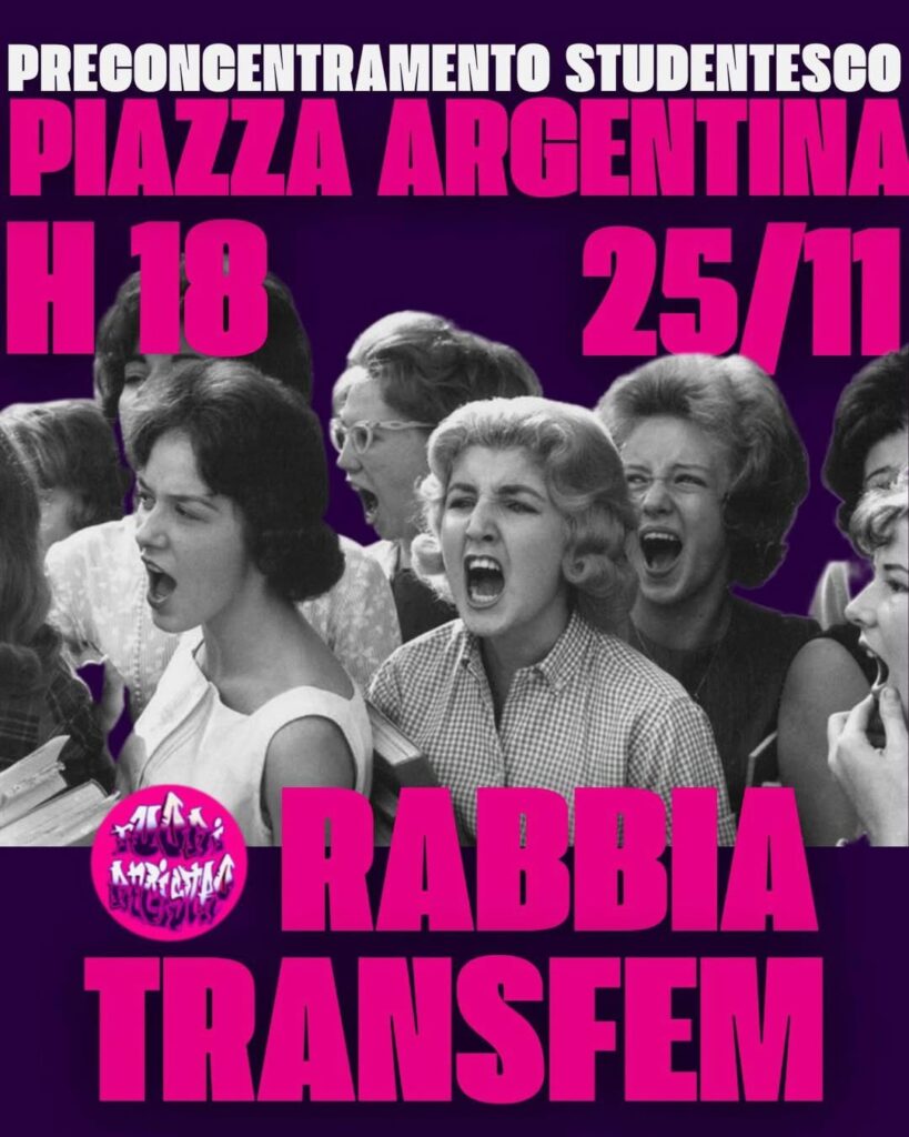 Come Fuori Registro, da più di 20 scuole diverse, ci ritroveremo il 25 NOVEMBRE in PIAZZA ARGENTINA ALLE 18 per andare poi tuttx insieme al corteo cittadino!