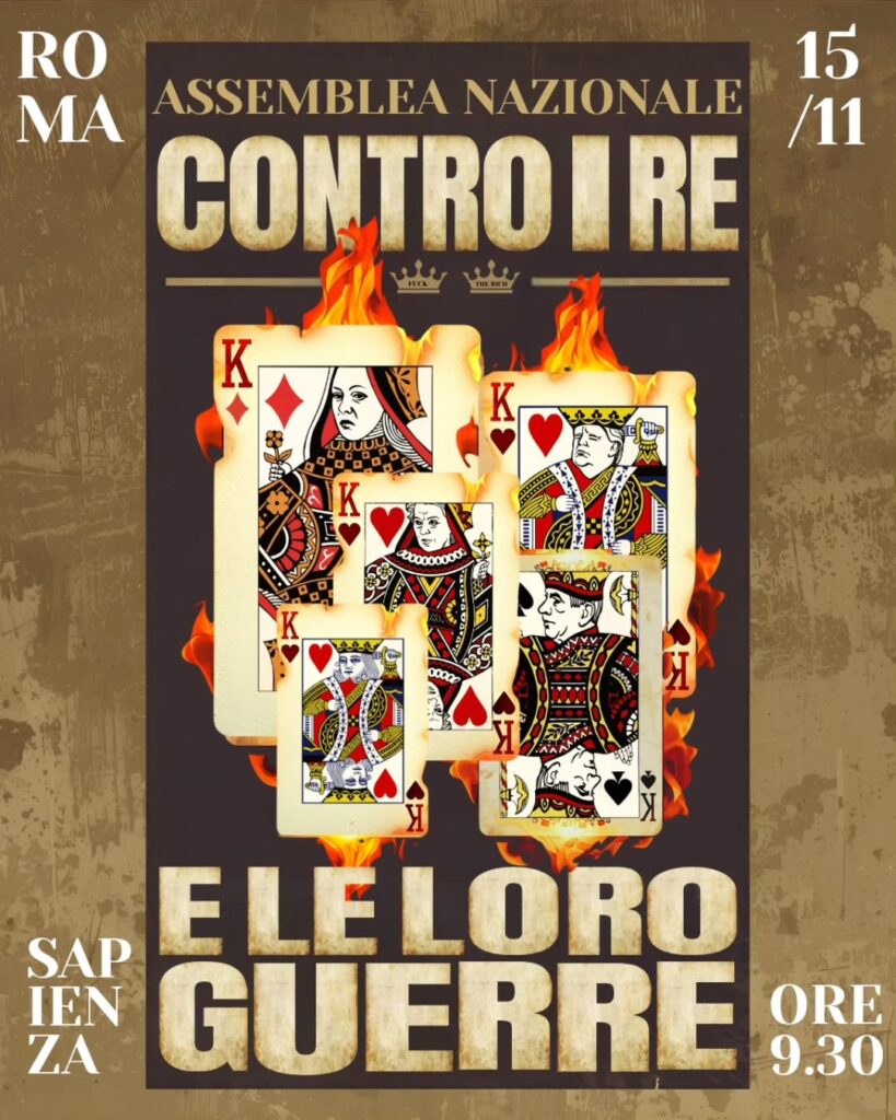 Sabato, 15 novembre, alle ore 9:30, presso la Sapienza Università di Roma, ci incontriamo per costruire un percorso, una connessione dei territori, delle città, delle pratiche di mobilitazione emerse durante gli scioperi generali di settembre e ottobre e i prossimi che verranno.