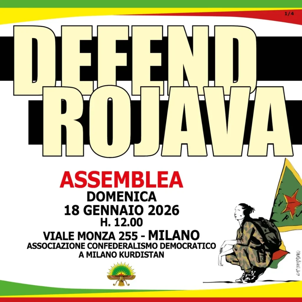 Dopo i recenti attacchi contro i quartieri curdi di Aleppo e l’annuncio dell’intenzioni di attaccare il Rojava da parte del nuovo governo islamista al governo in Siria assemblea in difesa dell’esperimento del confederalismo democratico domenica 18 gennaio 2026 alle 12 in viale Monza 255.