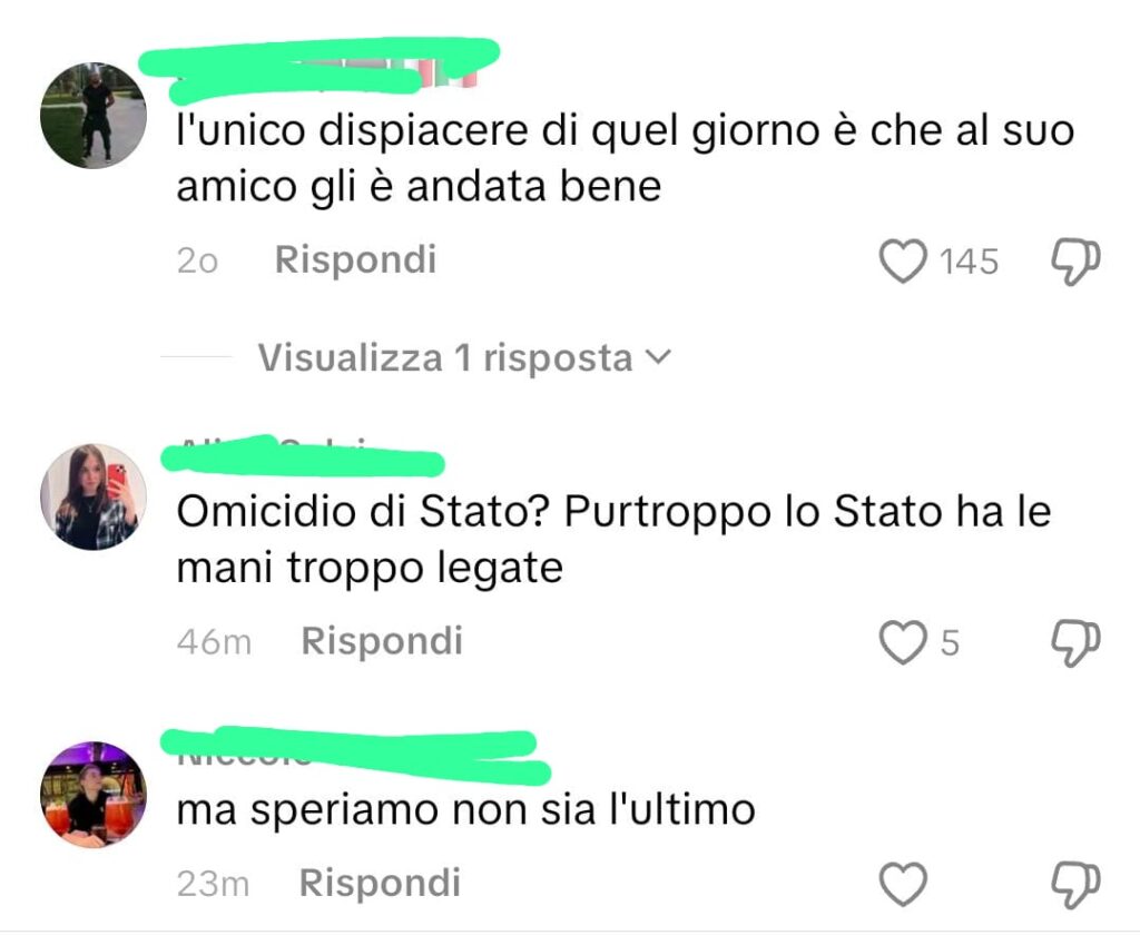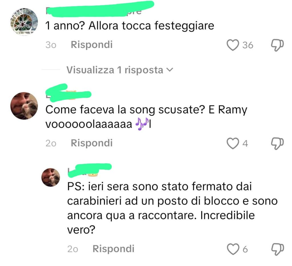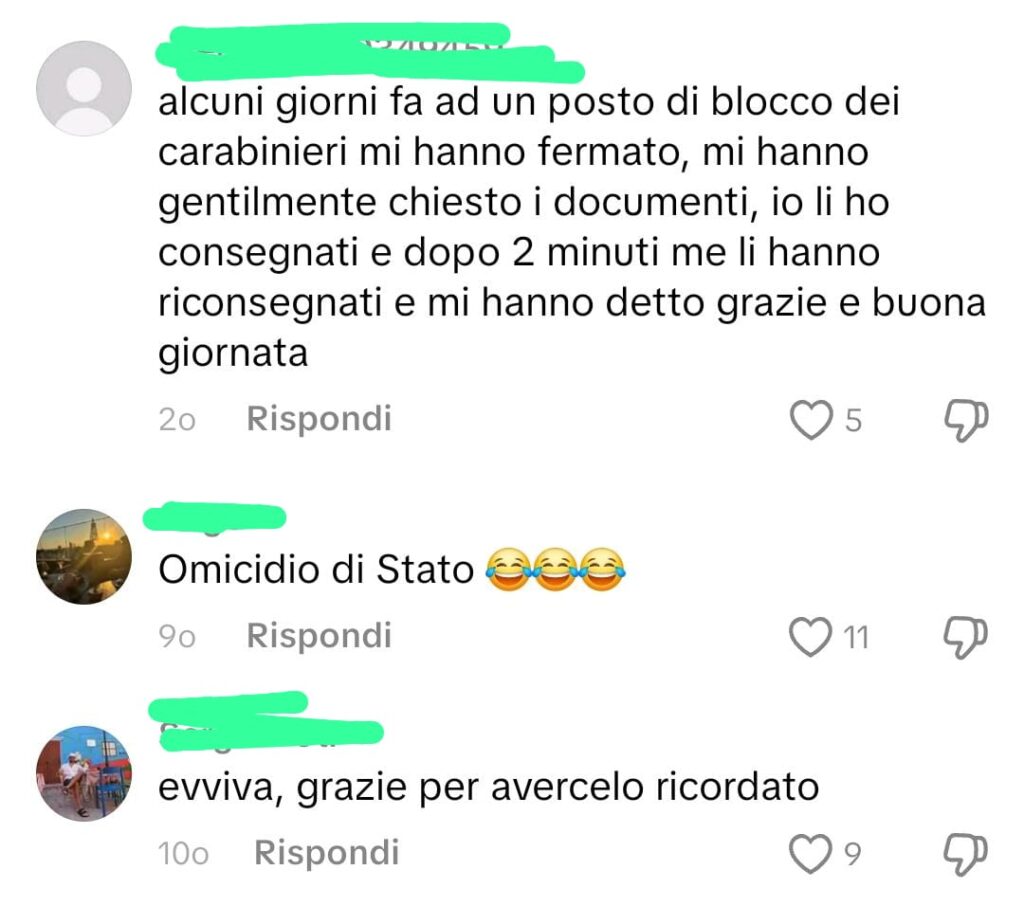 [In foto: commenti sotto al video di Milano In Movimento ripubblicato sul mio profilo TikTok]