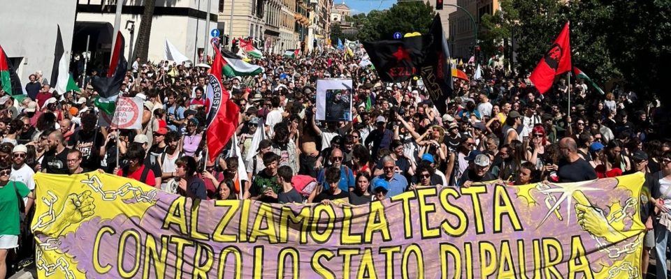 Ieri manifestazione nazionale a Roma contro la misura liberticida del Governo Meloni. La settimana di opposizione al Decreto Sicurezza iniziata con le cariche della Polizia nei pressi di piazza Barberini lunedì 26 maggio è terminata ieri a Roma con una grande manifestazione che ha visto sfilare per le strade della capitale circa 150.000 persone. Chi, … Leggi tutto Quando la piazza fa il botto: 150.000 contro il Decreto Sicurezza
