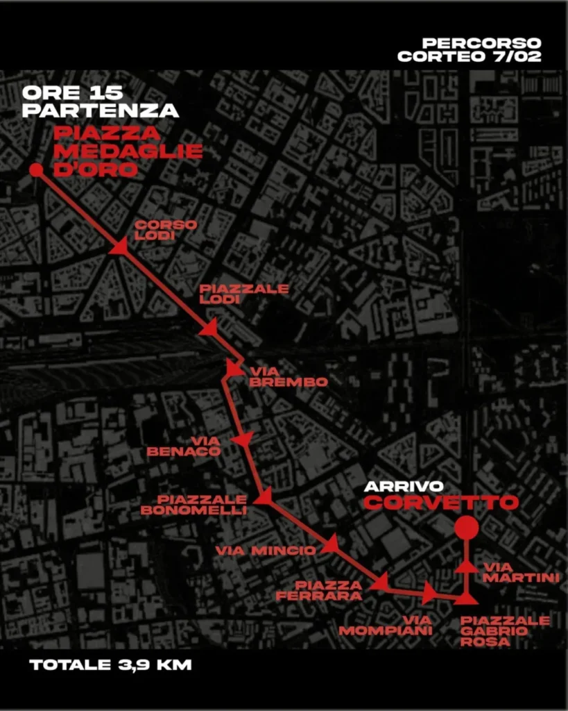 Concentramento ore 15 piazza Medaglie d’oro e arrivo in piazzale Corvetto: di seguito il percorso e le tappe della manifestazione popolare con cui attraverseremo i quartieri del sud-est di Milano e le parti della città più coinvolte dalla devastazione del grande evento, passando a ridosso dello Scalo di Porta Romana dove sorge il Villaggio Olimpico e raggiungendo la zona di Corvetto. Zone simbolo di un modello di città e sviluppo insostenibile e diseguale, razzista e securitario, ma anche della capacità degli e delle abitanti dei quartieri e dei territori di costruire comunità resistenti.